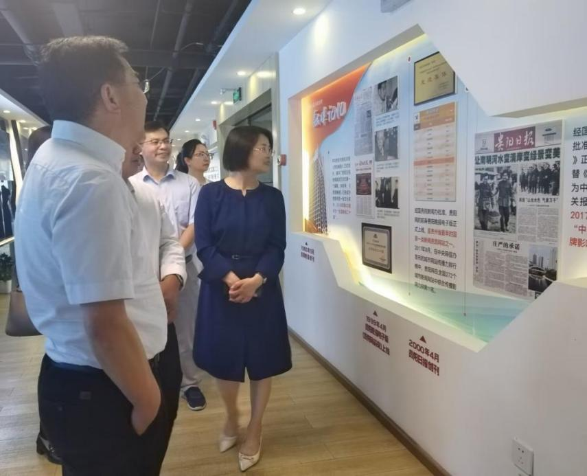 在貴陽(yáng)日?qǐng)?bào)傳媒集團(tuán)公司黨委副書記、總經(jīng)理趙曉敏的陪同下,朱克乾一行參觀了貴陽(yáng)市融媒體中心,重點(diǎn)了解中心的建設(shè)及運(yùn)行情況,聽(tīng)取了貴陽(yáng)市媒體融合服務(wù)功能情況介紹。
