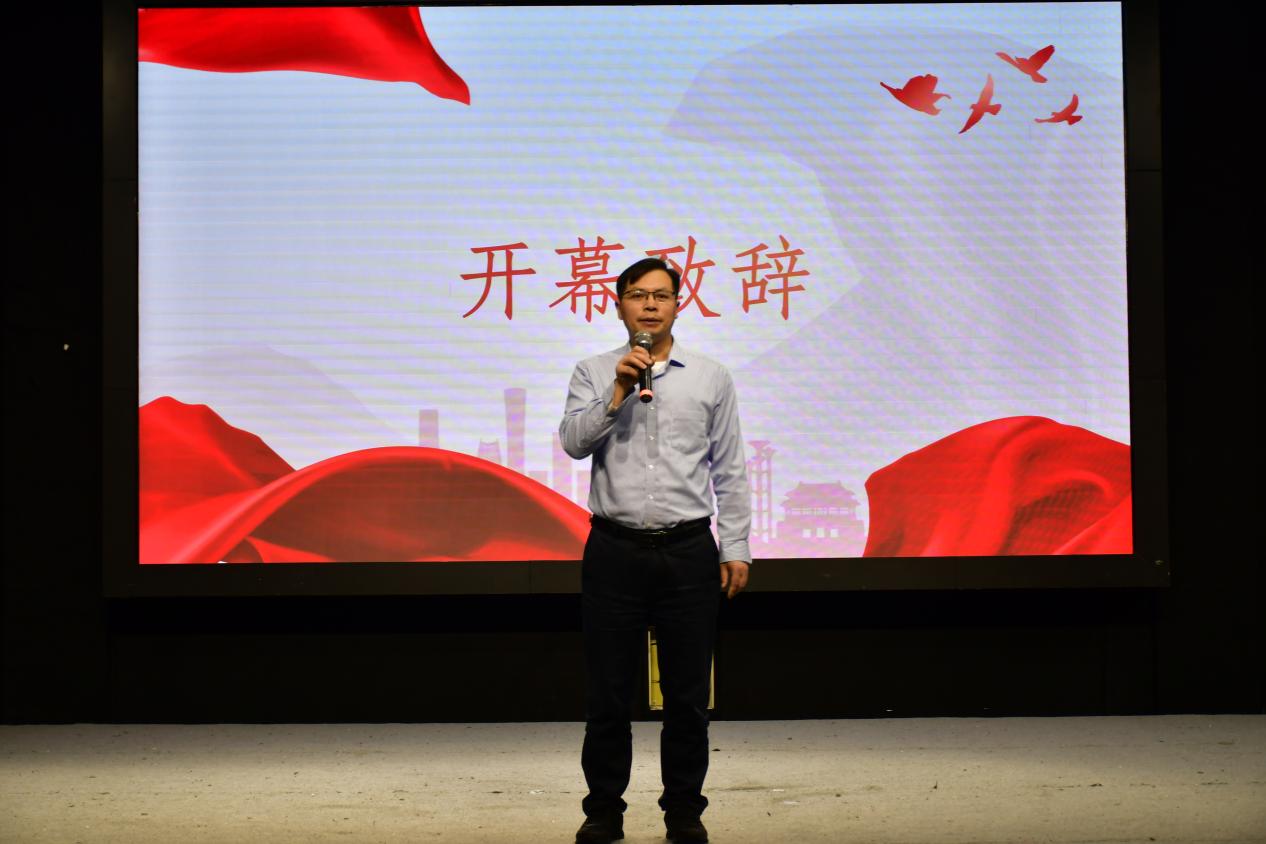 張武橋致詞,鼓勵大學(xué)生進行舞臺劇文化創(chuàng)作,展現(xiàn)當(dāng)代大學(xué)生勇于創(chuàng)新、意氣風(fēng)發(fā)的精神面貌和青春風(fēng)采。