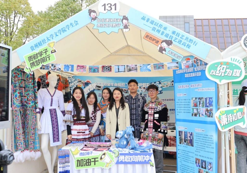 團(tuán)中央基層建設(shè)部部長齊虎到貴州財經(jīng)大學(xué)展臺詳細(xì)了解項目開展情況,貴州財經(jīng)大學(xué)黨委副書記彭潔蒞臨指導(dǎo)。貴州財經(jīng)大學(xué)文學(xué)院學(xué)生會項目“品非遺以傳承,乘技藝共黔行”——貴州非遺技藝進(jìn)高校獲評“優(yōu)秀項目”榮譽稱號。