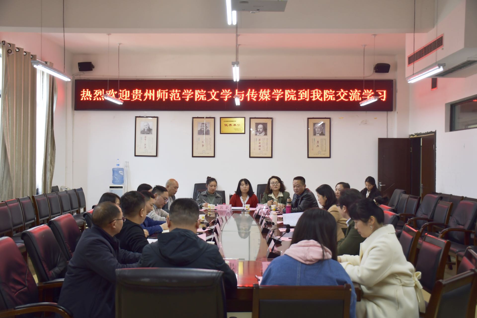 3月9日下午,貴州師范學(xué)院文學(xué)與傳媒學(xué)院院長(zhǎng)楊波、副處級(jí)組織員詹峰、漢語(yǔ)言文學(xué)系主任陳欣一行來(lái)我院交流學(xué)習(xí)。我院院長(zhǎng)顧雪松、各系副主任、學(xué)生科負(fù)責(zé)人、教師代表出席了本次會(huì)議。會(huì)議由院黨委書(shū)記楊經(jīng)華主持。