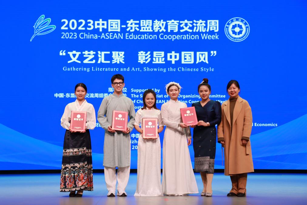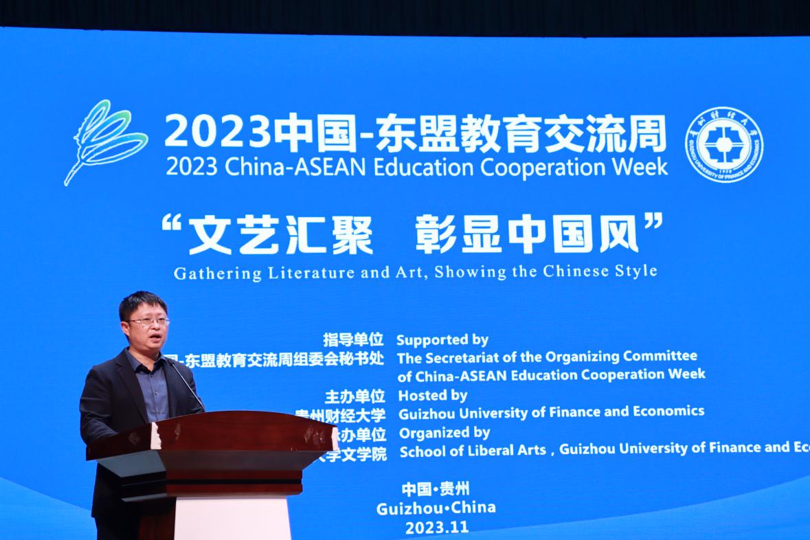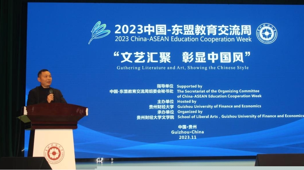 11月23日,由中國-東盟教育交流周組委會和貴州財經(jīng)大學主辦、文學院承辦的2023中國-東盟教育交流周“文藝匯聚 彰顯中國風”中華才藝比賽在我校學生活動中心會堂舉行。校黨委副書記、校長趙普出席。校團委、招生就業(yè)處、國際交流合作處、藝術學院、文學院負責人及800余名學生參加。文學院黨委書記楊經(jīng)華主持。