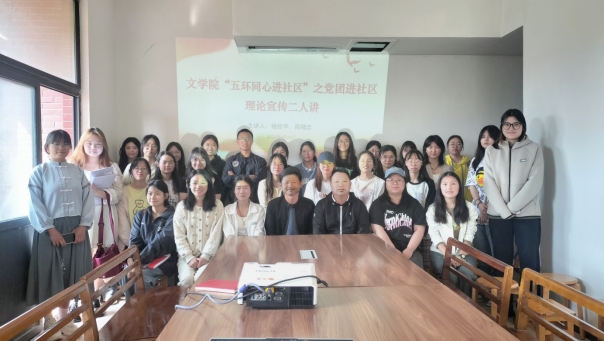 為深入學(xué)習(xí)貫徹習(xí)近平文化思想,文學(xué)院黨委4月26日在文學(xué)院“五環(huán)同心進(jìn)社區(qū)”之黨團(tuán)進(jìn)社區(qū)活動室開展以“心系鄉(xiāng)土,投身基層—推動民族地區(qū)鄉(xiāng)村振興理論與實(shí)踐”為題的“理論宣傳二人講”活動,文學(xué)院黨委書記楊經(jīng)華、專職組織員周緒忠主講,文學(xué)院黨員、發(fā)展對象、入黨積極分子、群眾代表參加。
