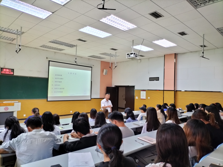 錢偉老師則圍繞著“學術(shù)論文寫作”為學生講解在學術(shù)論文寫作過程中需要注意的問題。錢老師通過正反面的例子強調(diào)寫好論文標題、關(guān)鍵詞、摘要及寫好文獻回顧等方面對于論文寫作的重要性。錢老師強調(diào),論文寫作需要努力達到信、達、雅的要求。