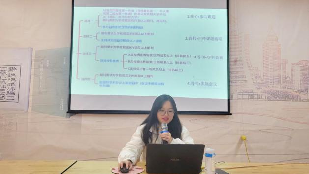 楊秋萍結(jié)合研究生的培養(yǎng)方案及畢業(yè)條件對(duì)論文寫作與發(fā)表、學(xué)術(shù)會(huì)議、課題申報(bào)、學(xué)科競(jìng)賽四個(gè)方面內(nèi)容進(jìn)行分享。她系統(tǒng)講述了文獻(xiàn)閱讀、論文寫作、期刊投稿、課題申報(bào)與結(jié)題、獲取學(xué)術(shù)會(huì)議資訊的渠道及參會(huì)注意事項(xiàng),并結(jié)合結(jié)合自身參賽經(jīng)歷向同學(xué)們介紹了學(xué)科競(jìng)賽的類別與意義,鼓勵(lì)同學(xué)們有選擇地積極參加各項(xiàng)競(jìng)賽。
