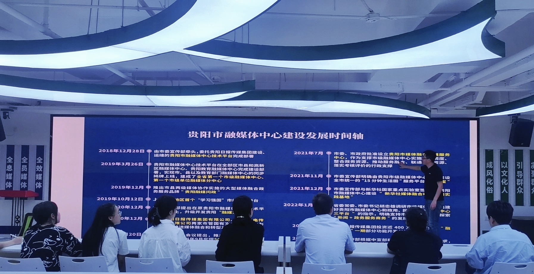 期間,張武橋與實(shí)習(xí)學(xué)生一起了解了貴陽(yáng)日?qǐng)?bào)融媒體中心建設(shè)和發(fā)展的情況。