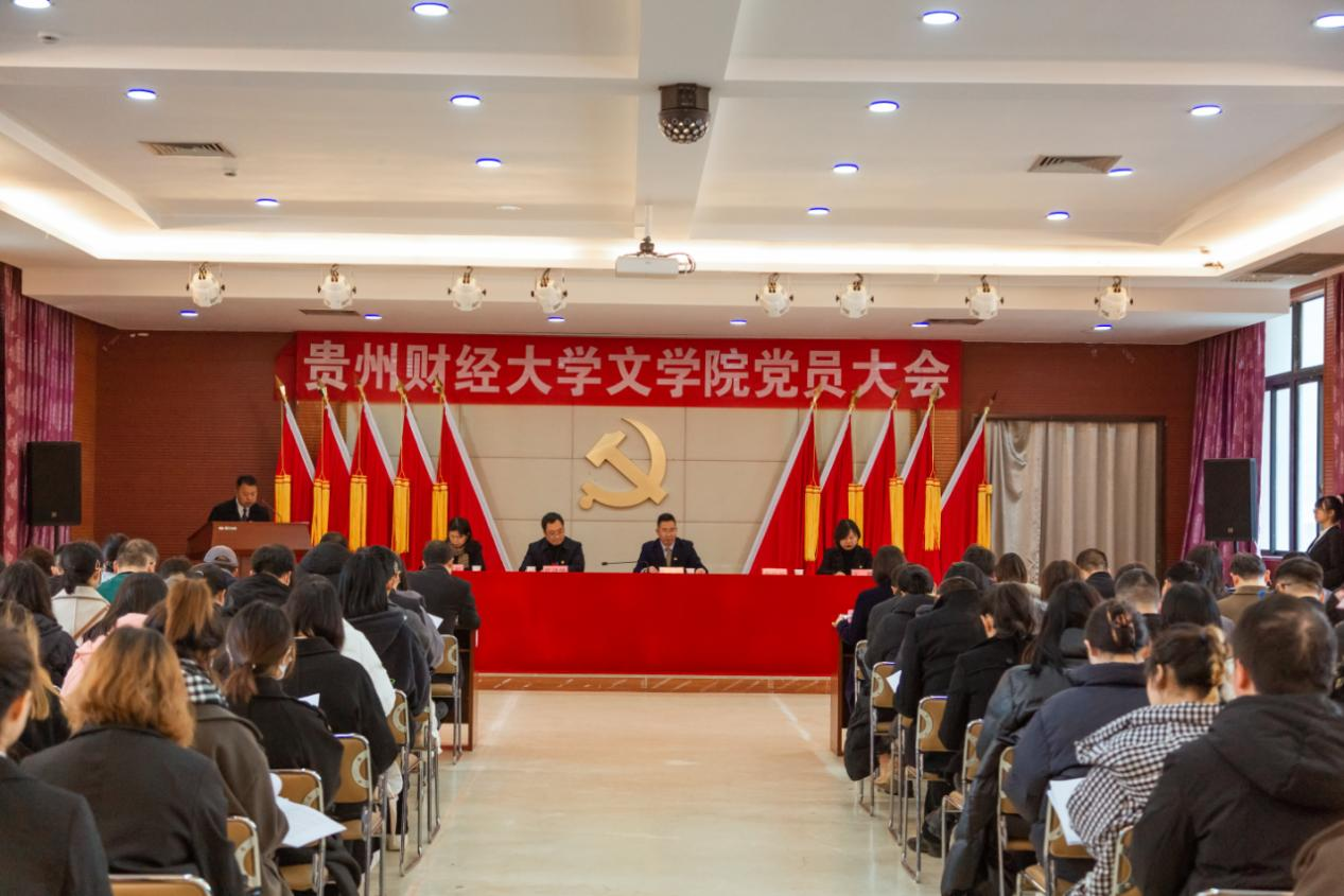 (文學(xué)院 周緒忠|攝影 鄧小碟)12月14日,中國共產(chǎn)黨貴州財經(jīng)大學(xué)文學(xué)院黨員大會在勵學(xué)樓401召開,校黨委副書記朱克乾出席會議,第二指導(dǎo)組組長徐梅、成員陳偉到會指導(dǎo),文學(xué)院非黨員領(lǐng)導(dǎo)、院長顧雪松、民主黨派代表王立杰應(yīng)邀出席會議,學(xué)院117名黨員師生參加大會。學(xué)院黨委副書記文靜主持會議。