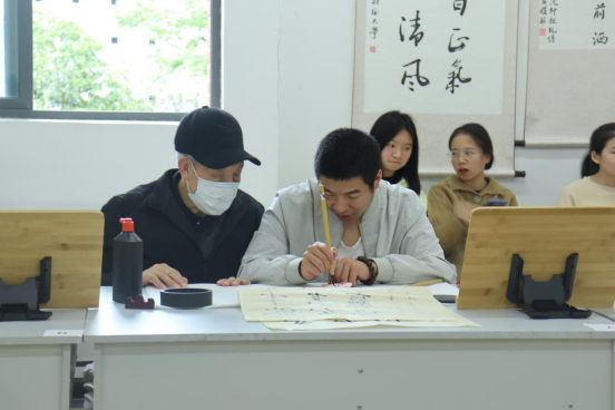 創(chuàng)作結(jié)束后,張昌杰老師對每一位同學(xué)的創(chuàng)作進行了細致的指導(dǎo)和講解。張昌杰老師強調(diào),書法寫作時,應(yīng)首先統(tǒng)觀全局,有整體布局,才能對用筆、結(jié)字、章法、墨韻等方面做到精美。最后,對書法作品進行了評比,評定二等獎2名、三等獎3名及優(yōu)秀獎10名。
