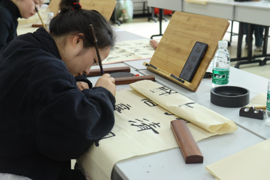 本次書法比賽共設(shè)置了創(chuàng)作、評選、交流互動三個環(huán)節(jié)。活動中,同學(xué)們個個揮毫潑墨,激情滿懷地書寫。