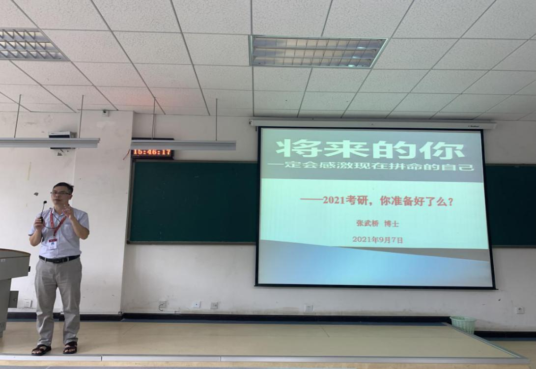 張武橋博士以向?qū)W生拋出“2021考研,你準(zhǔn)備好了嗎?”之問(wèn)為引,結(jié)合自己對(duì)新聞與傳播專業(yè)發(fā)展的理解,鼓勵(lì)學(xué)生要以嚴(yán)謹(jǐn)和積極的態(tài)度面對(duì)每一次學(xué)習(xí)機(jī)會(huì)及人生選擇,讓學(xué)生堅(jiān)信“將來(lái)的你,一定會(huì)感激現(xiàn)在拼命的自己”。