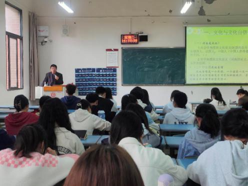 游來林老師圍繞“什么是文化”“為什么要文化自信”兩個問題,運用生動的案例講進行了深入淺出的講解闡釋。他強調(diào)文化自信是一個民族、一個國家以及一個政黨對自身文化價值的充分肯定和積極踐行,并對其文化生命力的持久性擁有堅定的信心。最后,游來林老師對同學們提出了殷切期望,要求同學們堅定文化自信,學好專業(yè)知識,全面系統(tǒng)地準確認識傳統(tǒng)文化的重要性,為全面建設社會主義現(xiàn)代化國家、全面推進中華民族偉大復興貢獻青春力量。